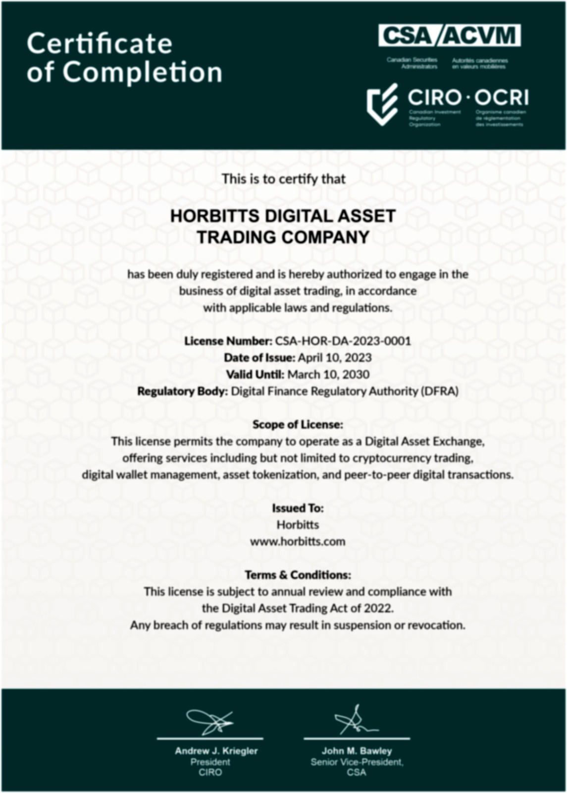 Recognized globally for innovation, performance, and reliability, Horbitts and its sub-brands continue to be trusted partners in the evolving digital asset landscape
